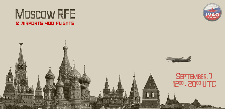 Российский дивизион IVAO представляет вам событие, не требующее лишних слов. Это Moscow Real Flight Event, который пройдёт в субботу, 7 сентября - в День Рождения столицы России. Вас ждёт 8 часов диспетчерского обслуживания на 10-ти позициях контроля и 2 аэропорта Московского аэроузла. В этом году в мероприятии участвуют аэропорты Шереметьево (UUEE) и Внуково (UUWW). Более 400 регулярных и чартерных рейсов вы можете забронировать на сайте RFE а также в форуме RU-IVAO. На сайте представлена вся необходимая информация, в т.ч. брифинг для пилотов, информация об аэропортах-партнёрах, в которых также согласовано диспетчерское обслуживание, схемы и сценарии.